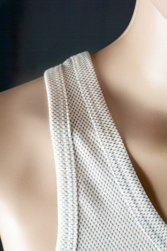 Bei der Qualität von New Antiwave handelt es sich um ein Rechts-links-Jacquardgestrick, in einer Kombination aus gekämmter organischer, kontrolliert biologischer angebauter Baumwolle und mit Silber beschichtetem Polyamid.