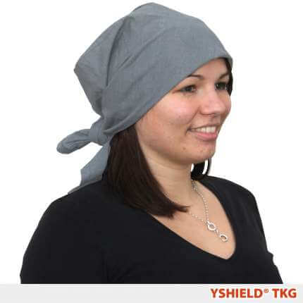 Kopftuch (dreieckig oder quadratisch) aus Steel-Gray, 35 dB Schirmdämpfung.